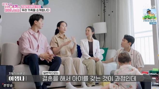 이날 박수홍은 "오늘은 특별한 가족을 만난다"며 "새로운 형태의 자발적 비혼모 가정이다"라며 소개했다. 양세형은 "사실 처음엔 방송을 통해 알게 됐는데, 사유리 씨와 허수경 씨도 같은 방식으로 아이를 낳았다"며 "사유리를 보며 처음 정자 기증이라는 개념을 접했고, 너무 행복해 보여서 관심을 갖게 됐다"고 밝혔다.