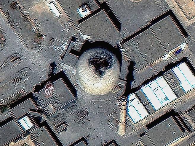 | 이스라엘 정밀 타격… 구멍 난 이란 핵시설 지붕 이란 핵 시설인 아라크 중수로가 19일(현지 시간) 이스라엘의 공습을 받아 지붕에 큰 구멍이 생겼다. 이스라엘은 13일부터 이란의 핵과 군사 시설에 대한 공격을 이어가고 있다. 19일과 20일에도 이스라엘군은 이란 수도 테헤란의 미사일 생산 시설 및 핵무기 연구개발 기관을 공습했다고 밝혔다. 아라크=AP 뉴시스 |