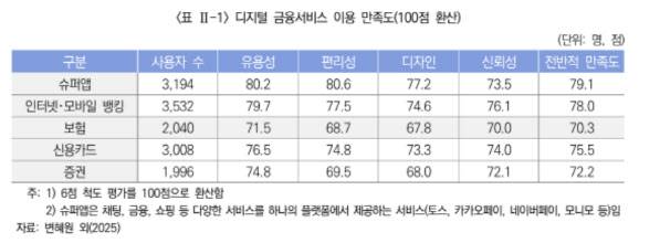 이를 토대로 보험연구원은 앱 편리성, 디자인 개선에 소홀했다고 지적했다. 퇴직연금 등 타업권과의 경쟁하는 분야에서 서비스 품질 개선은 중요한 요소라고 강조했다.