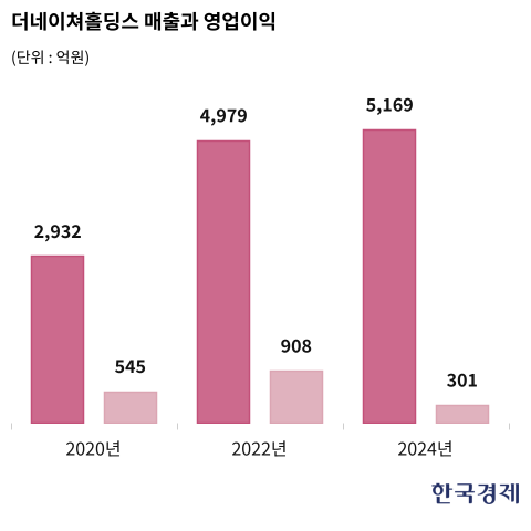 독립리서치를 운영하는 이재모 아리스(ARIS) 대표는 21일 기자와의 통화에서 “더네이쳐홀딩스는 2013년 내셔널지오그래픽 라이선스 도입 후 패션 및 액세서리 업체로 변모했다”며 “유명 브랜드를 온라인과 디지털 마케팅을 통해 높은 판매율을 이끌었고, 재고가 많지 않아 수익성이 좋고 자산이 건전하게 운영되는 것이 특징이다”고 분석했다. 이어 “국내에 집중된 매출을 중국, 홍콩, 대만 등 아시아권 중심으로 매장을 확대하며 글로벌 사업을 확장하고 있다”고 덧붙였다. 그는 “최근 3년간 실적을 보면 매출은 정체고 영업이익은 감소인데, 매장 확대에 따른 인건비와 감가상각비용 증가 영향이 있다”고 했다.