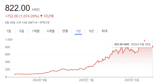 20일 홍콩 증권거래소에 따르면 전날 라오푸 골드는 822홍콩달러(약 14만3000원)에 거래를 마쳤다. 올 들어 주가 상승률이 211.13%에 달한다. 지난해 6월 28일 홍콩 증시 상장 당시 공모가는 40.5홍콩달러에 불과했다. 하지만 실적 개선세에 힘입어 현재까지 1074.29% 폭등했다.