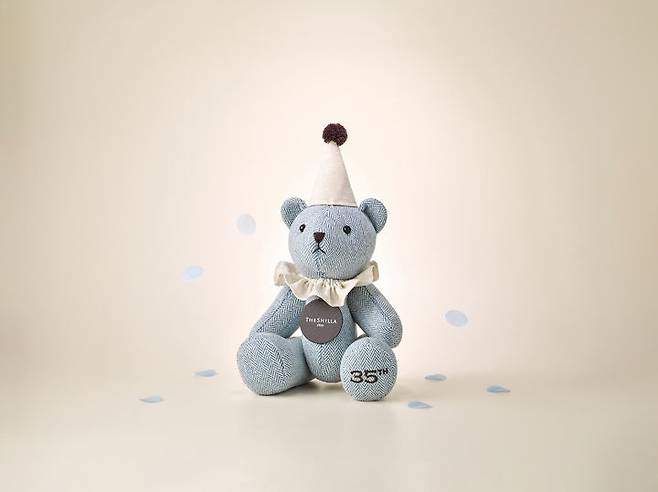 또 제주신라호텔의 마스코트인 신라베어도 패키지 이용 고객에게 증정한다. 제주신라호텔의 35주년을 축하하기 위해 고깔모자를 쓰고 있다.