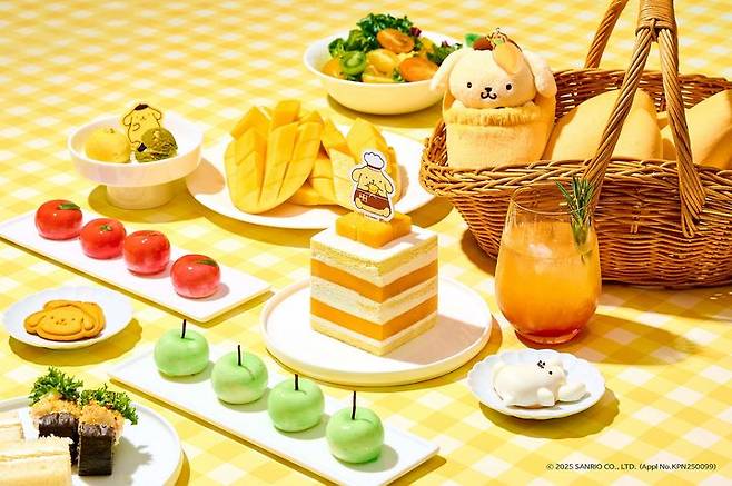 뷔페는 매주 주말과 공휴일 오전 11시 30분부터 오후 1시 30분까지 운영한다. 6월 사전 예약 시 망고 모양의 폼폼푸린 한정판 키링을 받을 수 있다.