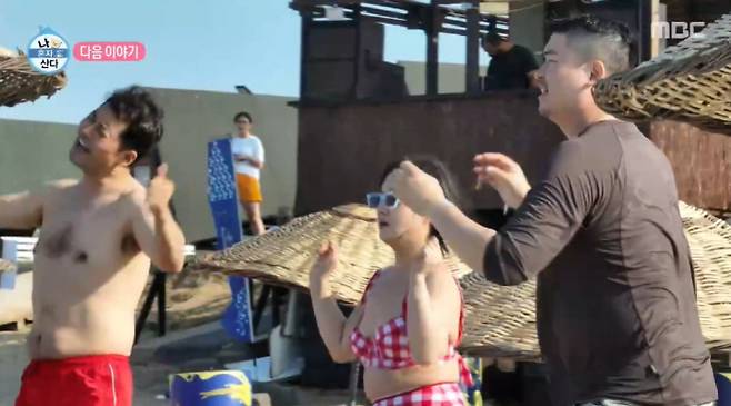 영상 속 '팜유' 전현무와 박나래, 이장우는 수영복 차림으로 춤을 추며 모래사장을 이동해 웃음을 안겼다.