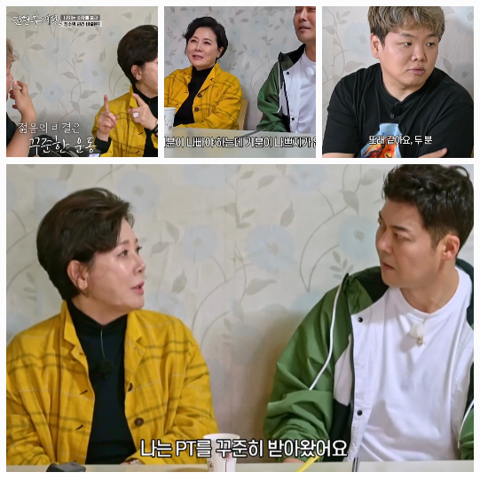 박정수는 “필라테스는 주 1회, PT는 주 2회씩 꾸준히 해왔다”며 7~8년간의 노력으로 만들어진 자신만의 리듬을 전했다. “100m를 뛰는 나를 보고 바깥분이 ‘잘 뛴다’고 하더라”며 사실혼 관계인 정경호 아버지, 정을영 감독과의 소소한 일화도 함께 전했다.