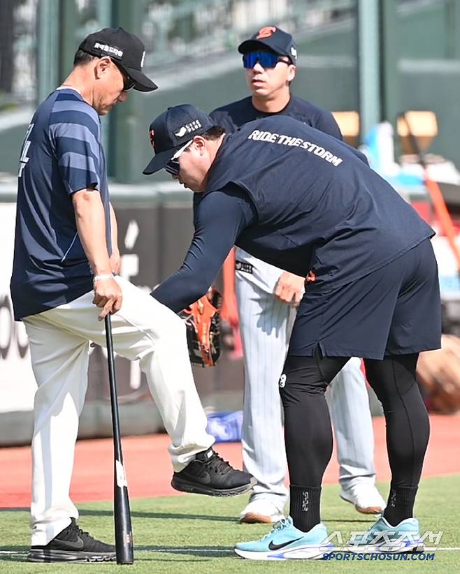 전날 포수로 출장했던 친정팀 후배 정보근은 안치홍과 만나 홈런에 대한 이야기를 늘어놓았고 후배의 모습에 안치홍은 흐뭇한 미소를 지어보였다.