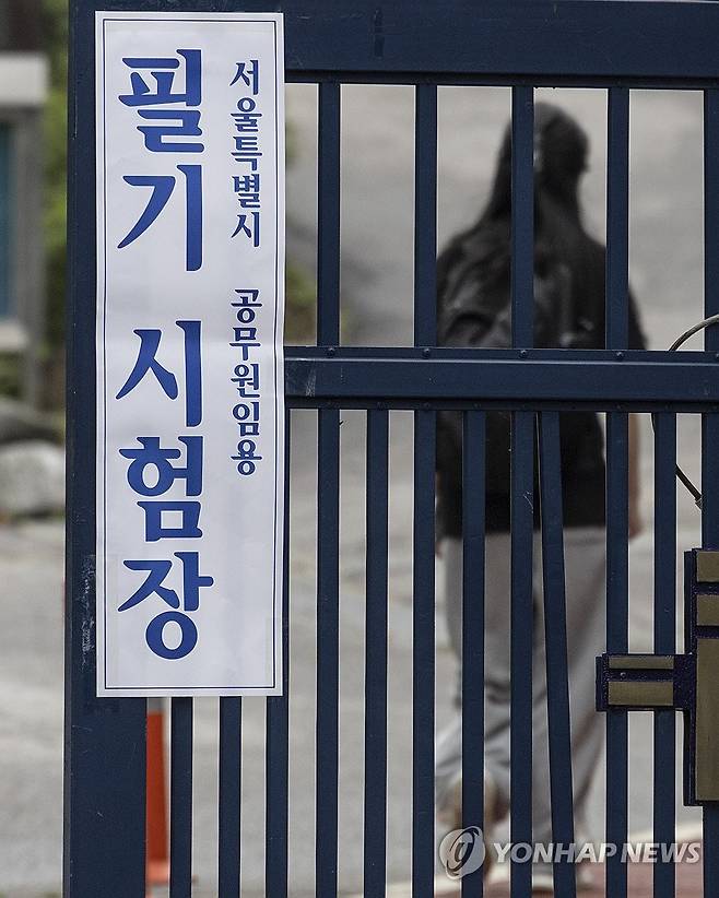 (서울=연합뉴스) 황광모 기자 = 2025년도 지방공무원 9급 공채 필기시험이 열린 22일 오전 수험생이 서울 종로구 경복고등학교에 마련된 고사장으로 향하고 있다.