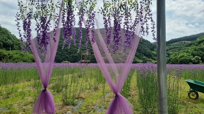 마을 입구부터 이어지는 보랏빛 꽃길은 주변 산세와 어우러져 한적한 자연 속 힐링 공간으로 주목받고 있다. 특히 새롭게 조성된 포토존에서는 꽃밭을 배경으로 인생 사진을 남기려는 방문객들의 발길이 이어지고 있다.