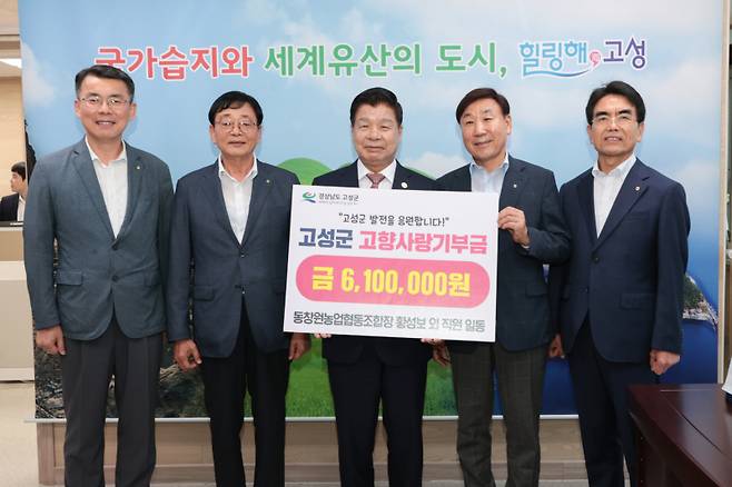 이번 기부는 동창원농업협동조합장 황성보 외 임직원 60명이 인근 지역인 고성군을 응원하고 고향사랑기부제 활성화와 기부문화 확산을 위해 소중한 마음을 전했다.