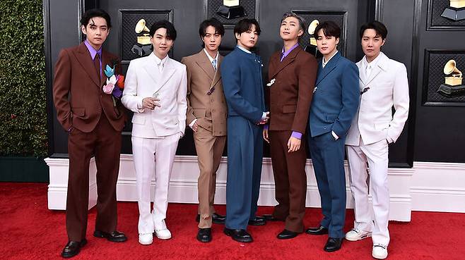 ▲ 2022년 4월 미국 그래미 시상식에 참석한 방탄소년단 (사진=AP)