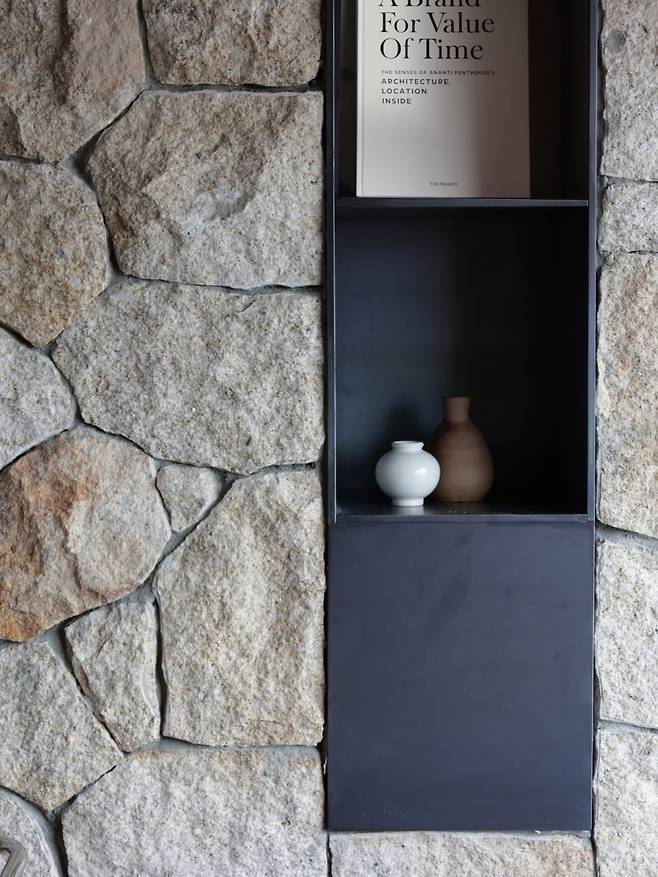 이 공간을 카페로 구성하면서 김 소장은 무엇을 들일지가 아니라 남길지부터 고민했다. 안방, 거실, 부엌 등 기존 가정집이 갖추고 있는 구조를 최대한 남긴 채로 공사를 시작했다. 들어가는 재료도 플라스틱, 아크릴 등 인공적으로 재생성되는 재료를 배제하고 돌, 나무처럼 자연이 주는 아늑함을 살릴 수 있는 재료를 활용했다. 김 소장은 “새롭고, 트렌디한 느낌보다는 편안함을 살리고 싶었다”며 “바닥은 무거운 돌을 깔고, 벽과 천장은 나무로 만들어 무게감과 아늑함을 모두 가져갔다”고 설명했다. 한강을 넉넉히 담기 위해 창문을 넓혔고, 옥상으로 올라가는 나선형 계단을 놓아 한강을 다양한 방향에서 조망할 수 있게 했다.