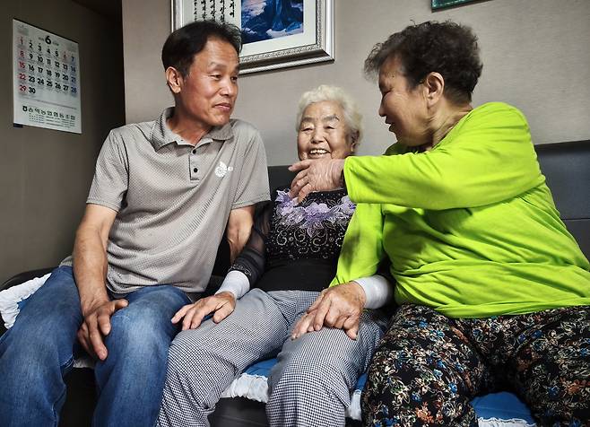 | ▲ 행담도 원주민인 이차분(91, 왼쪽부터), 임은순(91), 이익주(64) 씨가 최근 당진에서 만나 오랫동안 행담도 추억에 대해 이야기를 나누고 있다. |