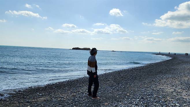 | ▲ 경주시 봉길리 바닷가에서 신문왕이 극진히 섬겼던 아버지 문무왕의 수중릉을 바라보고 있는 여행자. |