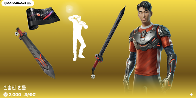 포트나이트 개발사 에픽게임즈는 21일 손흥민이 게임 내 '손흥민 번들'로 새로운 번들이 추가된다고 밝혔다.