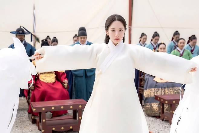 ‘귀궁’은 인간을 증오하는 이무기, 신력이 뛰어난 무녀, 왕궁에서 깨어난 팔척귀신 등이 등장하는 판타지 사극이다. 영매의 운명을 거부하는 무녀 여리(김지연)와 여리의 첫사랑 윤갑(육성재)의 몸에 갇힌 이무기 강철이가 왕가에 원한을 품은 팔척귀와 맞닥뜨리며 벌어지는 이야기를 그린다. 특히 ‘한국형 오컬트’를 내세워 컴퓨터그래픽(CG) 대신 특수분장을 거쳐 대부분 배우가 직접 연기해냈다.
