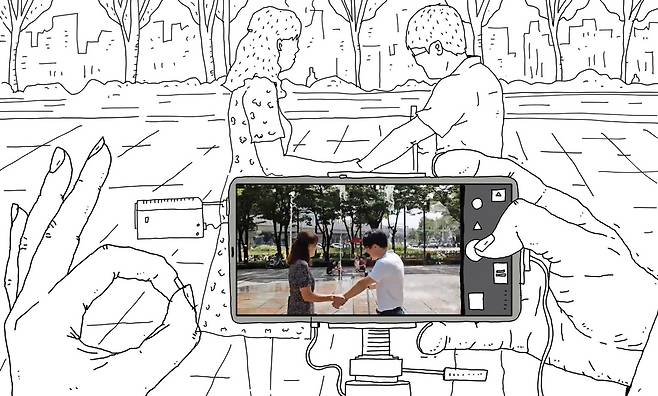 7월 삼복더위에 야외 촬영이 시작됐다. 촬영은 담당 직원과 내 활동지원사가 맡았다. 공원에서 남녀 주인공의 데이트 신을 찍기 시작했다. 하필 폭염특보가 내린 날이었다. 내가 “큐”를 외치자 주인공들이 혼신의 연기를 펼쳤다. 나는 웃지 않기 위해 애를 써야만 했다. “컷” 사인을 주자 모두가 참았던 웃음을 터뜨렸다.