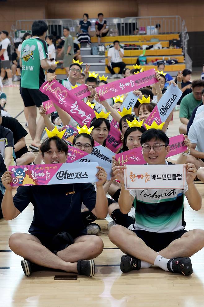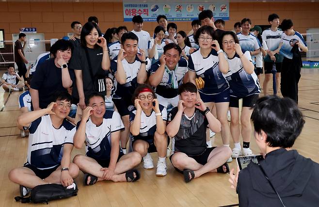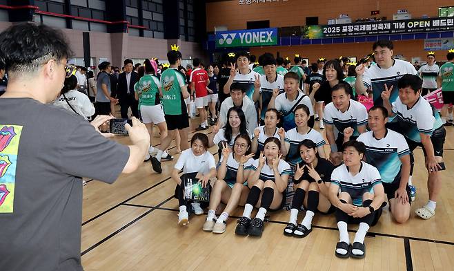 경북매일신문이 주최하고 포항시 배드민턴협회가 주관한 ‘2025 포항 국제 불빛 축제 기념 OPEN 배드민턴대회’가 21일 포항 만인당과 실내체육관에서 열렸다. 개회식 후 동호회원들이 파이팅을 다짐하며 기념 촬영을 하고 있다. /이용선기자 photokid@kbmaeil.com