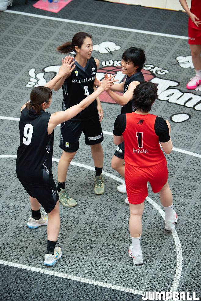 [점프볼=고양/유용우 기자] 21일 스타필드 고양 1층 센트럴 아트리움 특설 코트에서 열린 ‘2025 하나은행 WKBL 3x3 트리플잼’ 2차 대회, BNK와 일본 모리스 라크로와팀이 경쟁하고 있다.