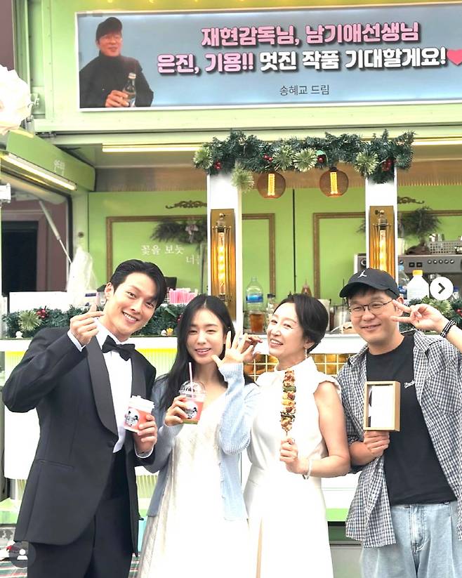 간식차에는 "재현 감독님, 남기애 선생님, 은진, 기용!! 멋진 작품 기대할게요"라는 송혜교의 메시지가 담긴 배너도 걸려 있어 현장 분위기를 더욱 훈훈하게 만들었다.
