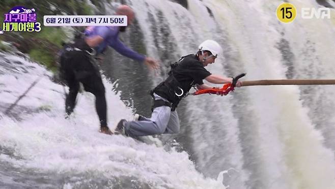 빠니보틀X신승호, 폭포 스윙 도전...곽튜브 "미친 거 아니야?" 경악 ('지구마불')