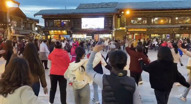 | ▲ 중국 윈난 샹그릴라 광장춤 중국 윈난 샹그릴라 광장춤을 추는 나, 흰색 가방을 맨 사람. |
