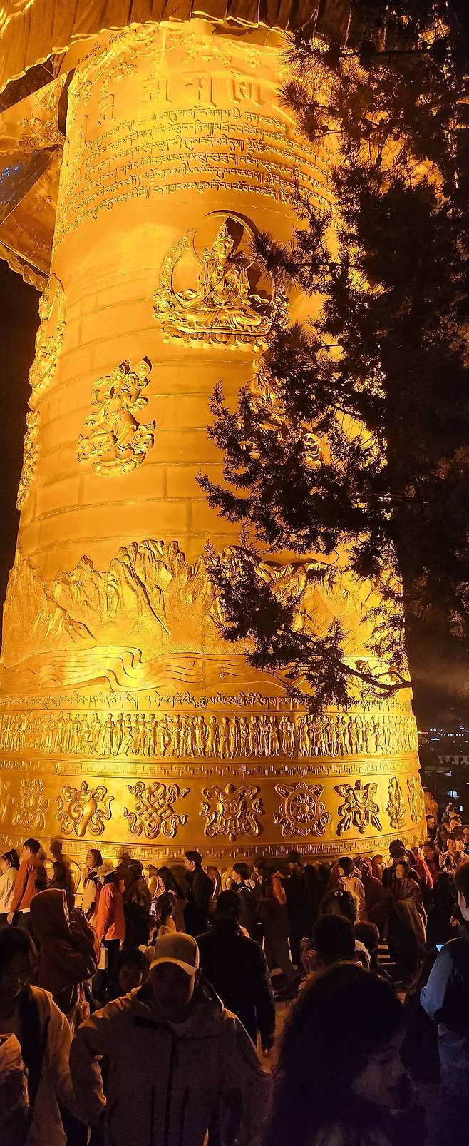 이곳에는 '세 바퀴를 돌리면 행운이 찾아온다'는 티베트 불교 전통이 깃든, 거대한 소원 바퀴 '좐진통(转经筒)'이 있다.