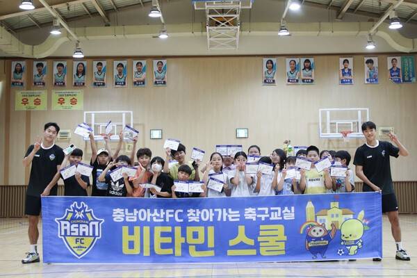 [SPORTALKOREA] 황보동혁 기자= 충남아산프로축구단(구단주 오세현, 대표이사 이준일, 이하 충남아산FC)이 지난 18일(수) 온양동신초등학교를 찾아 '비타민스쿨' 프로그램을 진행했다.