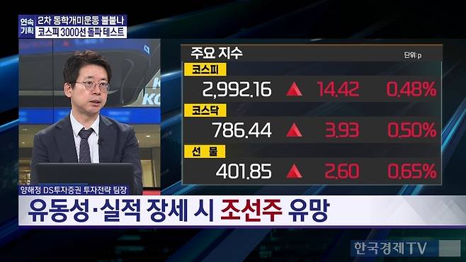 양해정 DS투자증권 투자전략 팀장은 올해 하반기 증시에서 조선, 반도체, 유통 업종이 주목을 받을 가능성이 높을 것으로 전망했다. 21일 한국경제TV에 따르면 양 팀장은 지난 20일 방송에서 "상반기와 하반기 증시 색깔이 달라진다"며 이 같이 말했다.