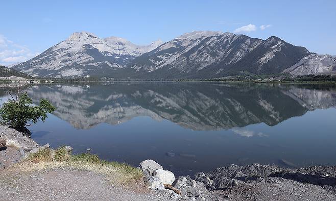 캐나다 앨버타주 밴프(Banff) 국립공원에서 바라본 로키산맥의 웅장한 모습이 호수에 비쳐 장관을 연출한다.
