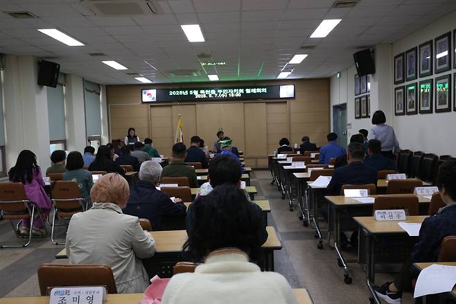 5월 7일, 임원회의와 정기회의를 앞둔 옥천읍 주민자치회를 찾았다. 임원회의에서 토의안건을 미리 협의한 뒤 정기회의를 진행하는데, 이날은 2025년 주민자치사업안 중 하나였던 '무지개 꽃길 조성'과 '향수봄날장터' 논의가 이뤄졌다. 무지개 꽃길 관리법, 옥천포도복숭아축제 기간에 함께 열릴 향수봄날장터 운영 방법을 논의한 것. 김대훈 회장과 김명희 사무국장, 김기택 사무차장을 비롯해 5개의 분과장(기획특별분과 전찬순 분과장, 교육청소년분과 임효옥 분과장, 문화체육분과 김용주 분과장, 지역개발분과 엄정자 분과장, 환경복지분과 이규억 분과장)이 모여 열띤 토론에 참여했다.