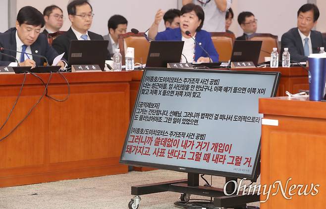 | ▲ 서영교 더불어민주당 의원이 2024년 10월 14일 오후 서울 여의도 국회 법제사법위원회에서 열린 고위공직자범죄수사처 국정감사에서 임성근 구명 로비 의혹과 관련한 이종호 전 블랙펄인베스트먼트 대표의 메시지를 보여주고 있다. |