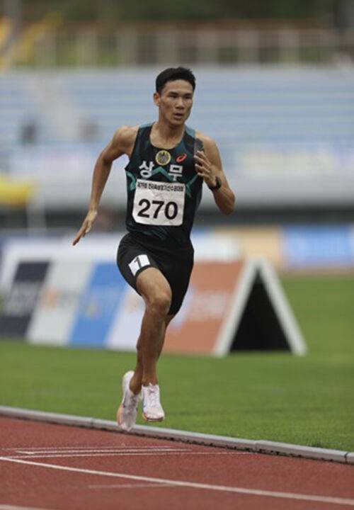 ▲ 이재웅이 21일 강원 정선종합운동장에서 열린 제79회 전국육상경기선수권대회 남자 1,500m 경기에서 역주하고 있다.