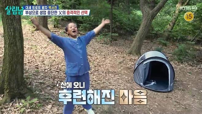 이어 새 보금자리를 완성한 박서진 아버지는 산 생활을 위해 환복했다.