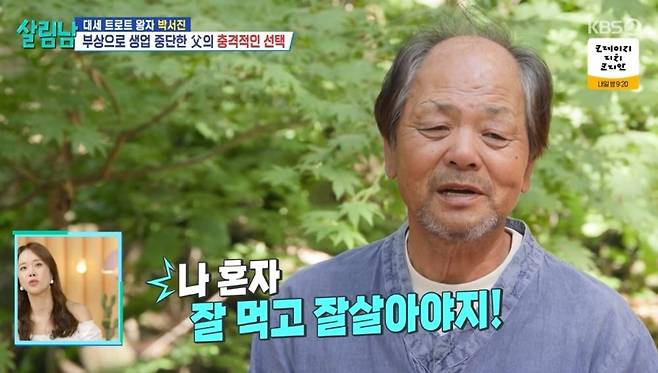 이후 박서진 아버지는 가족들에게 전화가 오자 "나 신경 쓰지 마라. 여기서 살 거다"라고 폭탄 선언을 했다.