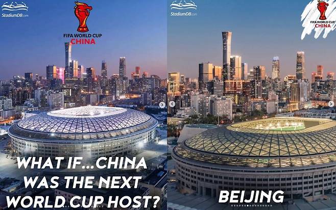 '스타디움DB닷컴' 공식 인스타그램은 "중국에서 열리는 월드컵?(FIFA World Cup in China?)"라는 문구와 함께, 베이징, 청두, 상하이를 포함한 중국의 다양한 도시의 현대적 경기장 사진을 공개했다.
