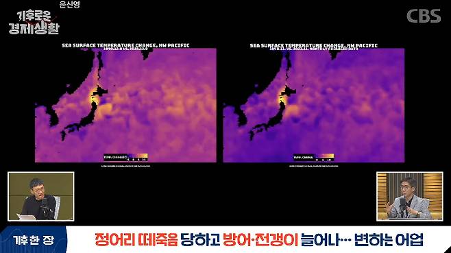 ◆ 홍종호> 뜨거워진 바다가 앞으로 어종들과 수산업에 미치는 영향이 크다고 말씀해 주셨는데, 한국과 일본 지역 바다에서 잡히는 어종에 미치는 영향을 구체적으로 알아보는 시간을 마련할까 합니다. 준비해 주신 내용 말씀해 주시죠.