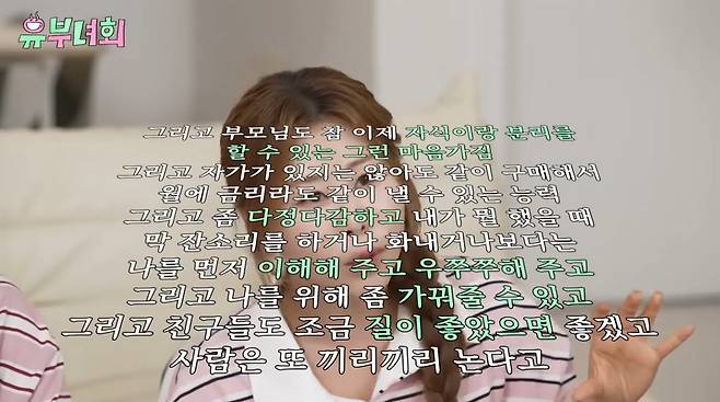 연애 근황을 묻자 박세미는 “유튜브를 굉장히 오래해 왔지만 그 사이에 (남자친구가) 많이 있었다. 하지만 단 한 번도 남자친구가 있다고 말하진 않았다. 그 친구가 다른 친구가 될 수는 있기 때문”이라고 대답했다. 김지유는 “연애하려고 노력 중이다. 결혼도 해야 하고 아기도 낳고 싶다”고 바람을 전했다.