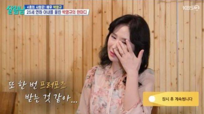 박영규의 진솔한 고백에 결국 아내는 "또 한 번 프러포즈받는 것 같다"라며 감동의 눈물을 흘렸고, "남편의 진심이 느껴졌다. 울지 말아야지 했는데도 나도 모르게 눈물 나고 감동받았다"고 털어놨다. 이에 박영규는 "당신이 내가 가는 길에 동반자가 되었으면 좋겠다"고 아내를 향한 진심을 고백했다. 아내 또한 "내가 최고의 남자랑 살고 있다는 걸 잘 알고 있기 때문에 앞으로 더 잘 살았으면 좋겠다"고 화답하며 계속해서 눈물을 훔쳤다.
