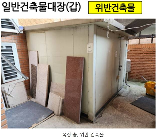 o 특히 옥상 컨테이너, 가건물, 내부 무단 칸막이 설치 등은 위반 건축물일 가능성이 높습니다.