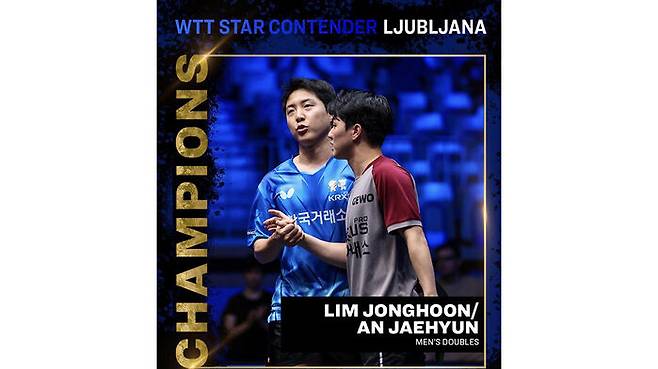 한국 남자탁구 '환상 콤비'인 임종훈-안재현(이상 한국거래소) 조가 '월드테이블테니스(WTT) 스타 컨텐더 류블랴나 2025'에서 '르브렁 형제'를 꺾고 정상에 올랐습니다.