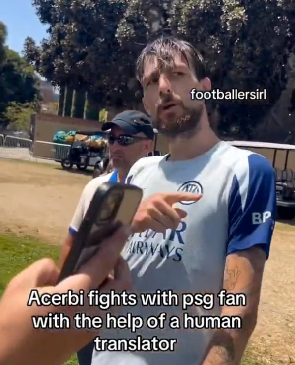 영국 '트리뷰나'는 "아체르비는 팬들과 미팅 행사에 참여했다. 한 팬은 PSG 유니폼을 입었는데, 아체르비에게 유럽축구연맹(UEFA) 챔피언스리그(UCL) 결승전(0-5 패배)을 언급하며 그를 도발했다"고 설명했다.