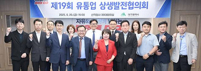 대구광역시는 20일 산격청사 대회의실에서 홍성주 대구광역시 경제부시장을 비롯해 지역의 대·중소 유통업체 대표, 학계 및 유통 전문가 등 18명이 참석해 제19회 유통업상생발전협의회를 개최했다.