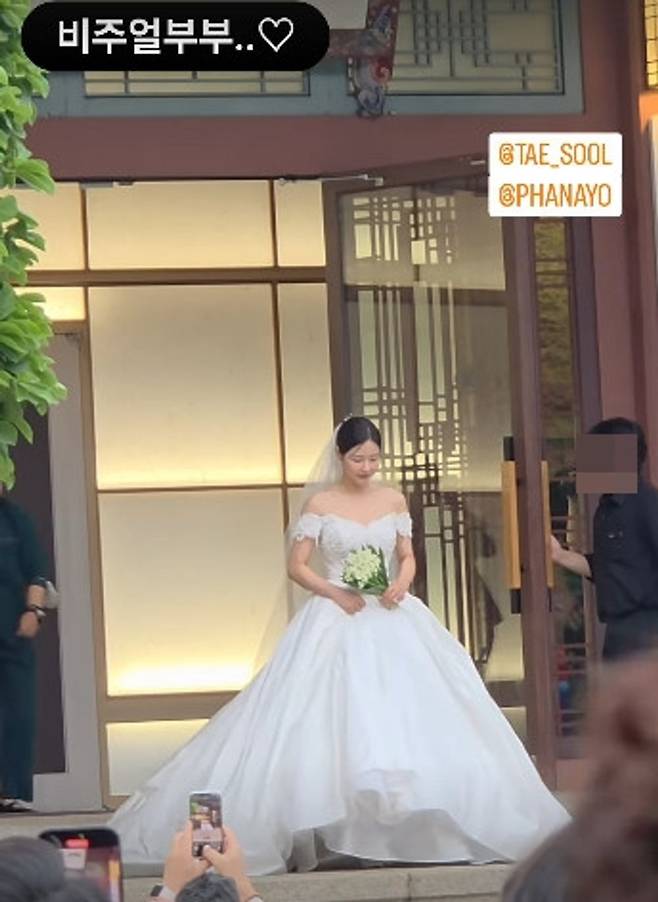 사진과 함께 공개한 영상에선 "비주얼 부부"라는 글과 야외 결혼식장에서 신랑 신부 입장을 하는 김태술과 박하나의 모습이 담겼다.