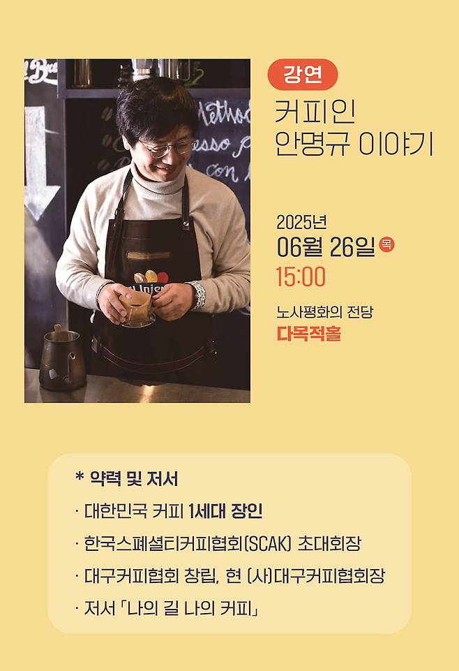 대구 노사평화의 전당은 2025년 기획 전시의 일환으로 '노동의 쉼표, 상생의 향기'를 주제로 '노동과 커피문화 이야기' 특별 전시회를 26일부터 11월 29일까지 개최한다.