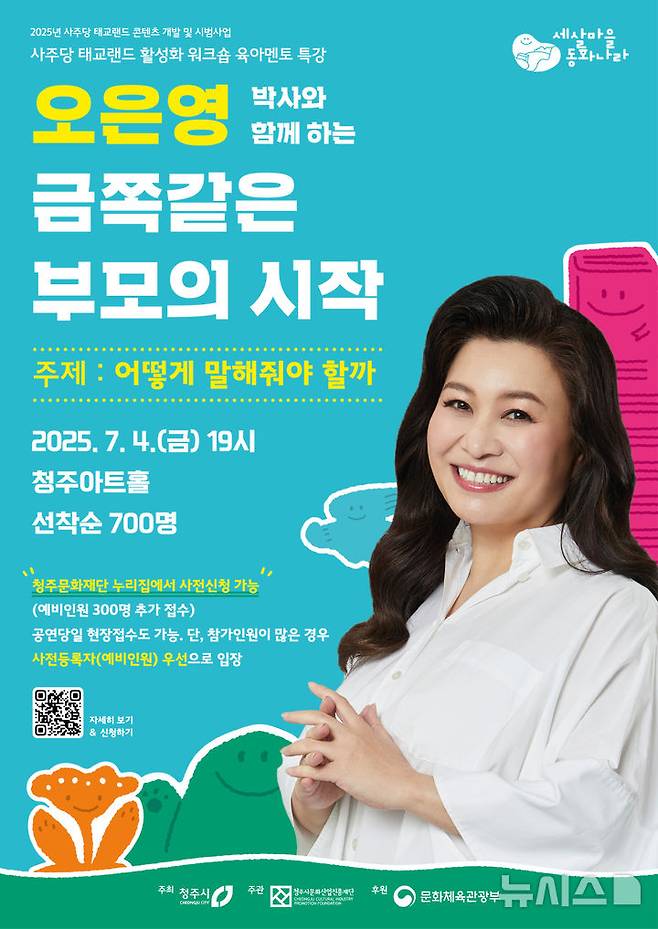 충북 청주시와 시문화산업진흥재단은 오는 23일부터 '오은영 박사와 함께하는 금쪽같은 부모의 시작' 워크숍 참여자를 선착순 700명 모집한다고 22일 밝혔다.