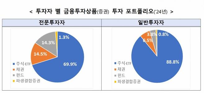 개인 전문투자자의 금융투자상품 투자 포트폴리오가 주식·ETF(상장지수펀드)에 집중된 일반투자자와 달리 분산투자 경향을 보인 것으로 나타났다.