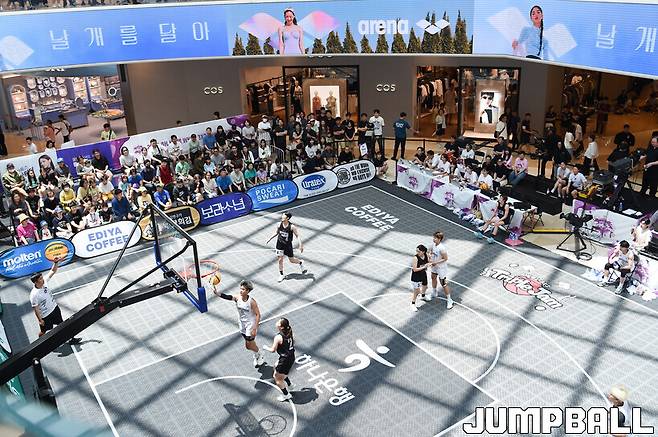 [점프볼=고양/박상혁 기자] 22일 고양 스타필드에서 열린 2025 하나은행 3x3 트리플잼 2차 대회 2일차 경기, CT 타이거즈와 윌의 8강 경기가 진행되고 있다.