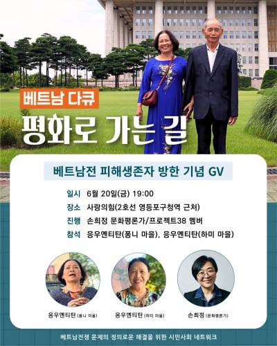 20일 저녁, 서울 영등포구 당산동 꿈이룸소극장에서 인상 깊은 행사가 진행됐다. 한베평화재단이 주최한 영화 시사회 자리였다. 상영된 영화는 도안홍레가 감독한 1시간 남짓의 다큐 <평화로 가는 길>로, 영화의 주인공이기도 한 응우옌티탄 등과 함께 이야기를 나누는 자리도 함께 마련됐다.