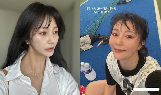 사진 속에는 축구 연습 후 셀카를 촬영 중인 안혜경의 모습이 담겨있다.