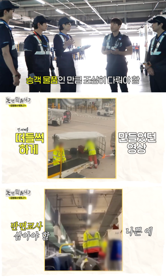 이에 유재석은 “승객 물품인 만큼 조심히 다뤄야 한다”며 “예전에 해외 항공사에서 영상이 한 번 뜨지 않았냐. 발로 막 차고 던지고”라고 했다.